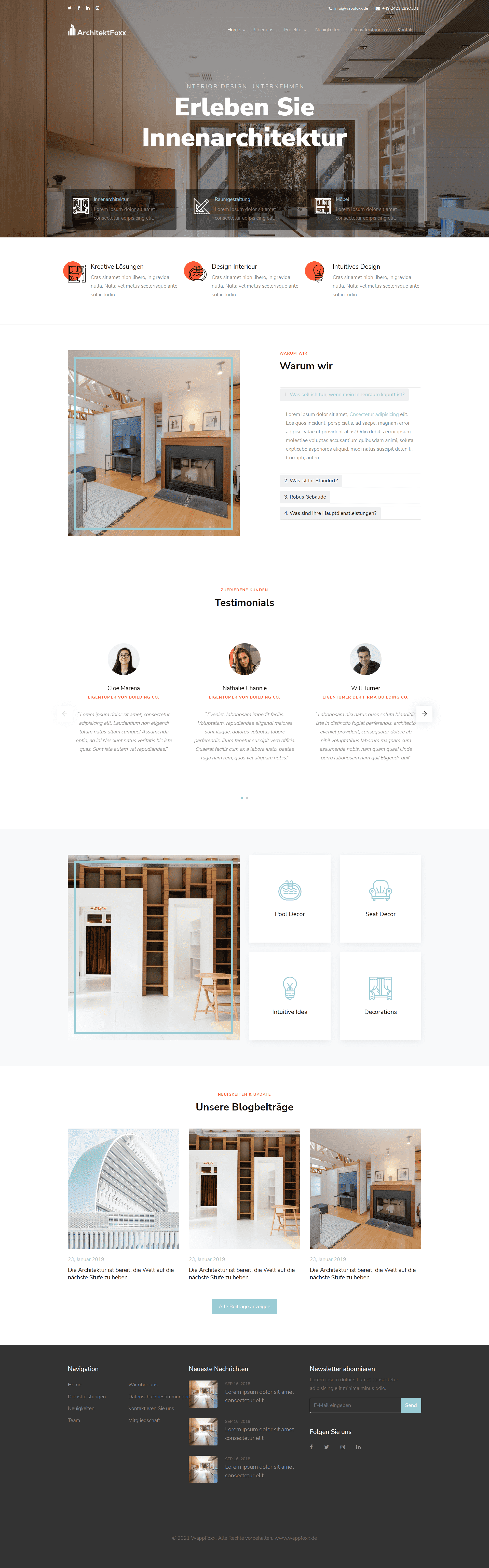 WappFoxx bietet die besten Website-Vorlagen ihrer Klasse, die für jede Website verwendet werden können. Unsere Vorlagen verfügen über ein weißes Kontaktformular, helle Farbpaletten und ein modernes Design. Wir haben sowohl HTML- als auch Bootstrap-Vorlagen. Es war noch nie so einfach, eine professionelle Website zu erstellen.