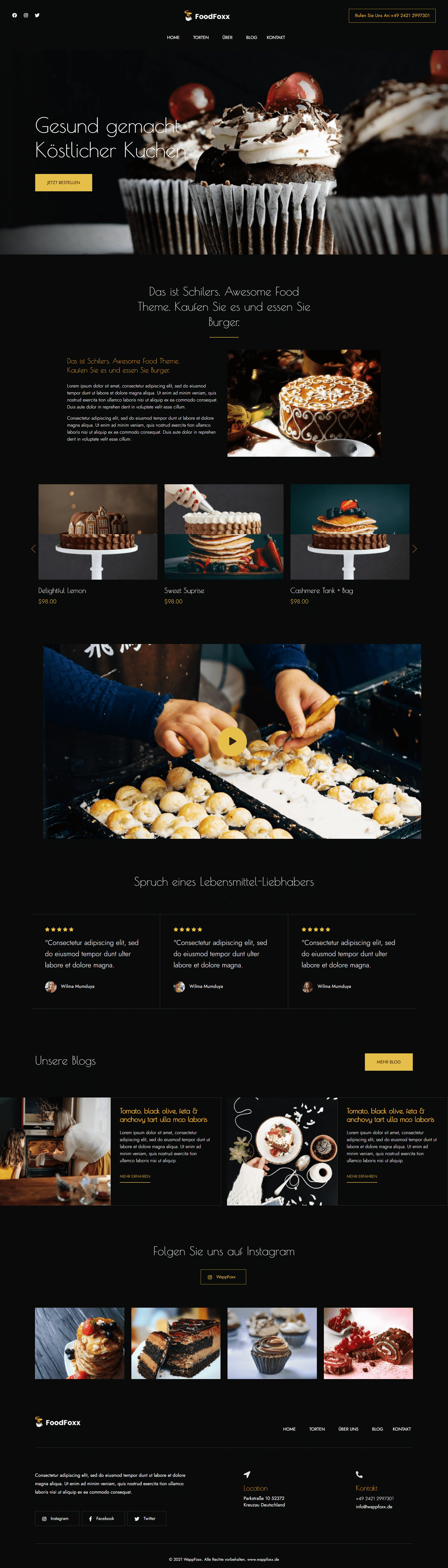 Cakeshop ist eine glamouröse, fast luxuriöse Kuchen- und Bäckerei-Website-Vorlage.