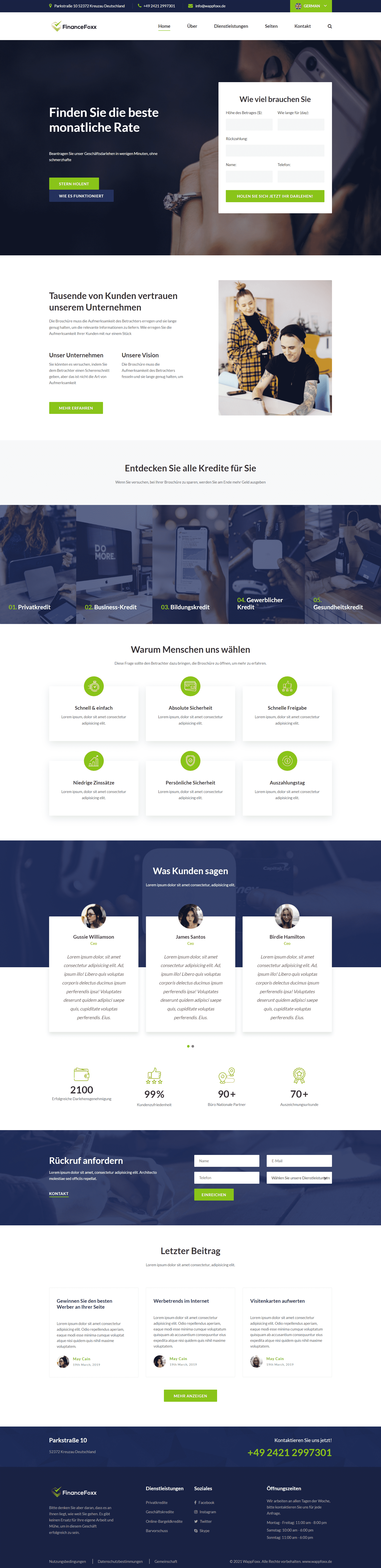 WappFoxx bietet die besten Website-Vorlagen ihrer Klasse, die für jede Website verwendet werden können. Unsere Vorlagen verfügen über ein weißes Kontaktformular, helle Farbpaletten und ein modernes Design. Wir haben sowohl HTML- als auch Bootstrap-Vorlagen. Es war noch nie so einfach, eine professionelle Website zu erstellen.