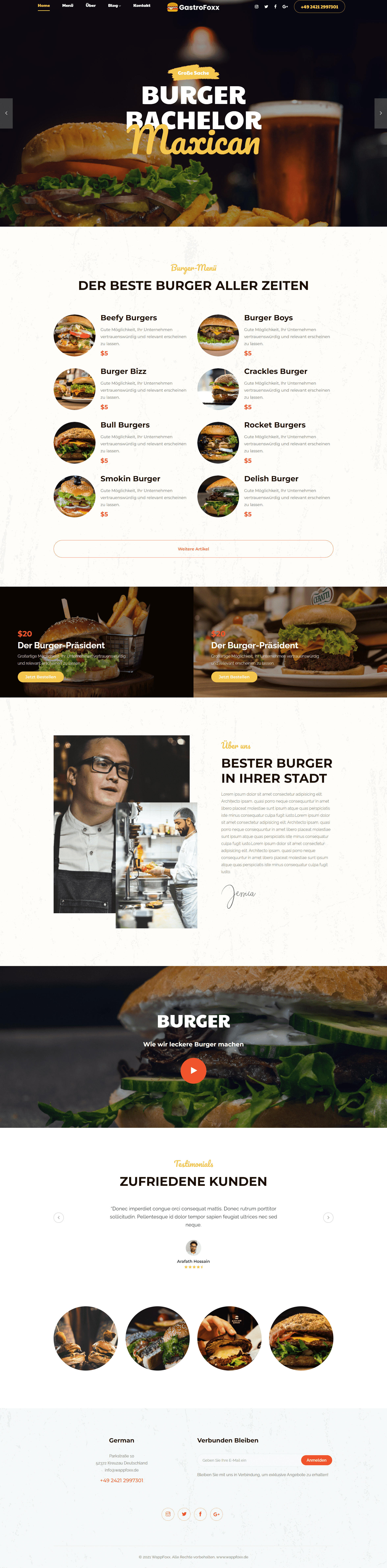 Burger ist eine auffällige kostenlose Website-Vorlage für Lebensmittel mit einem raffinierten Design, das…