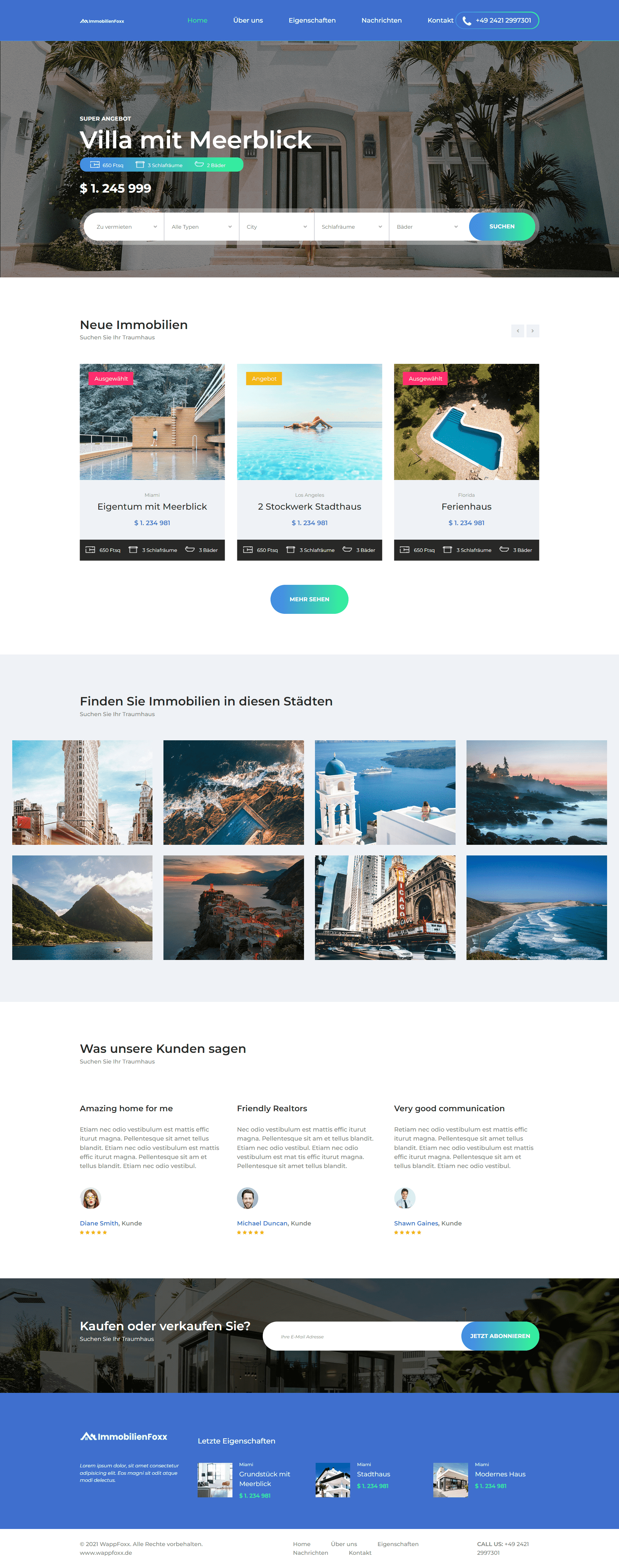 Bluesky ist eine kostenlose, moderne Immobilien-Website-Vorlage, die alle aktuellen Web- und Tech-Vorschriften erfüllt.