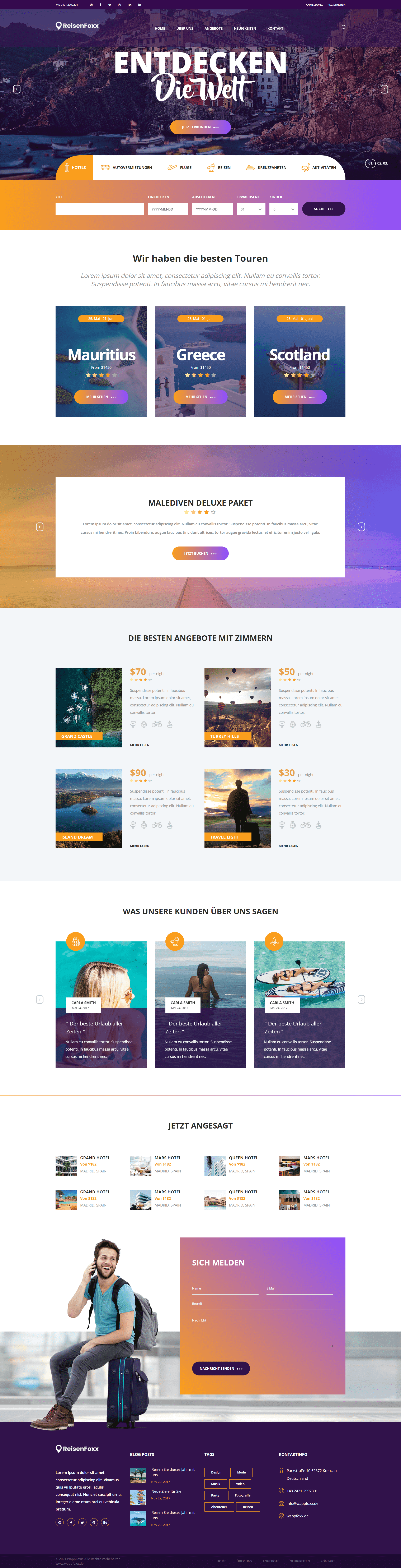 Travelo ist eine atemberaubende Website-Vorlage für Reisebuchungen mit einem modernen und kreativen Design.