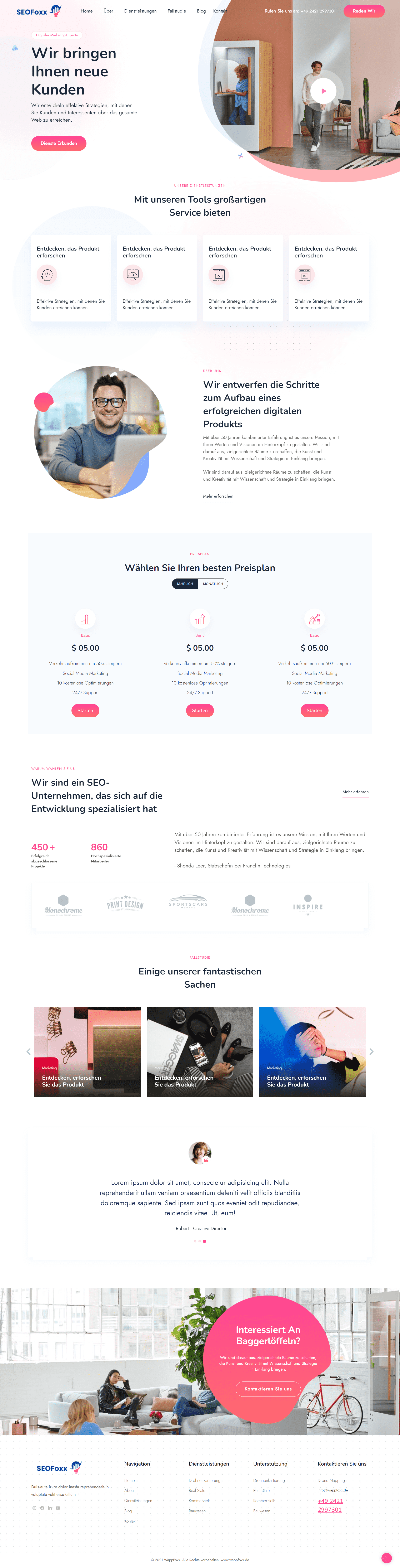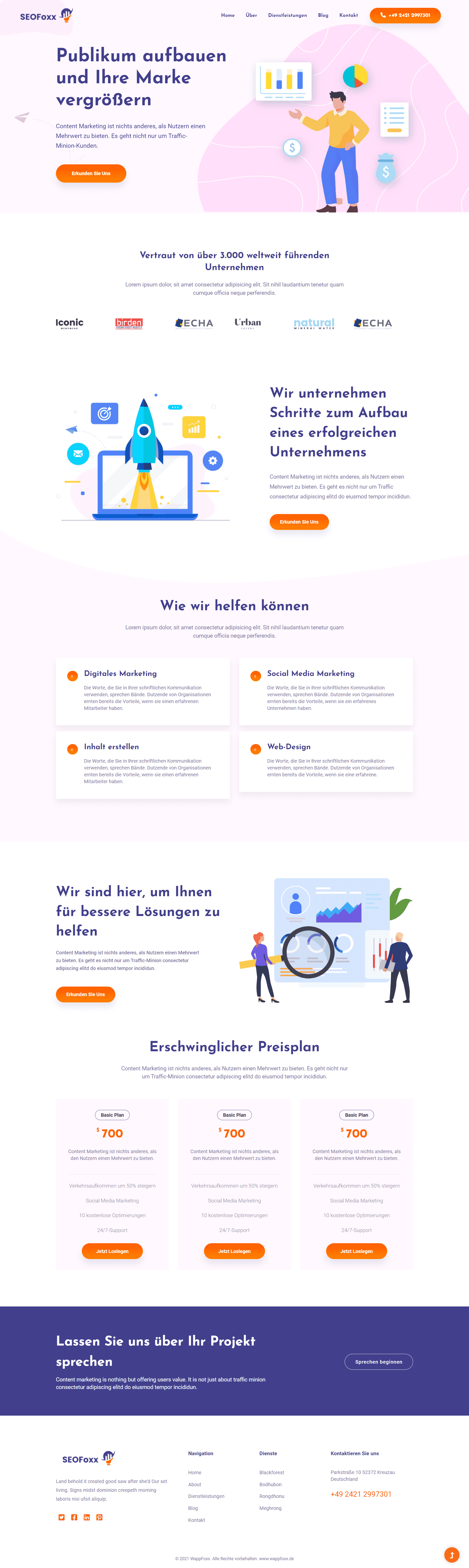 WappFoxx bietet die besten Website-Vorlagen ihrer Klasse, die für jede Website verwendet werden können. Unsere Vorlagen verfügen über ein weißes Kontaktformular, helle Farbpaletten und ein modernes Design. Wir haben sowohl HTML- als auch Bootstrap-Vorlagen. Es war noch nie so einfach, eine professionelle Website zu erstellen.